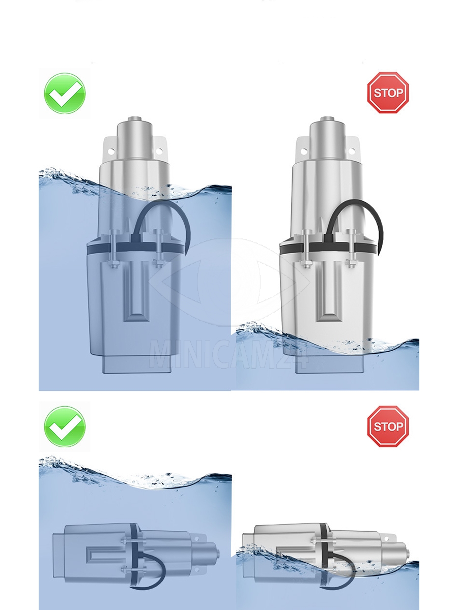 Корпус насоса изготовлен из прочного алюминия, что гарантирует долговечность и устойчивость к коррозии. Верхний забор воды и защита от сухого хода обеспечивают надежную работу устройства, предотвращая его повреждение в случае отсутствия воды. Остаточный уровень воды в 150 мм позволяет насосу эффективно работать даже при низком уровне жидкости.